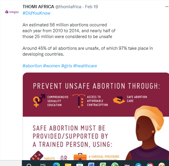 When I spoke to one of the advocates at THOMI AFRICA said the organization is in the process of developing effective strategies to build support for Safe Abortion Education & Advocacy (SAEA). She added on to say the strategy will come in handy in the form of a comprehensive Toolkit The Toolkit will be available in English and all other African languages. It will be especially helpful to other advocates and organizations working to implement innovative virtual or socially distanced programs that respond to young people’s needs pre and post-abortion.