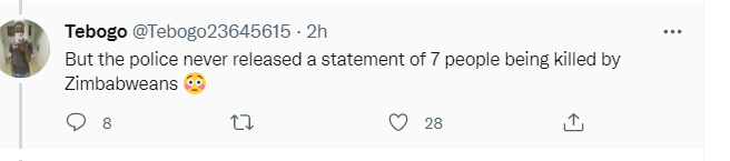 One Twitter user has also indicated that the police never released a statement of 7 people killed by Zimbabweans; the other Twitter member added on to say, whether it’s 1 or 7 people killed, the fact is that killing is wrong and should be condemned.