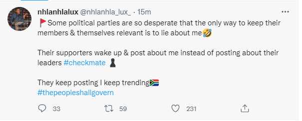 Nhlanhla Lux Dlamini is Picking a Fight with Some Political parties: Just take a look.